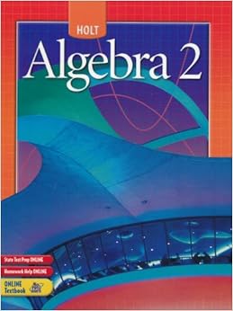 Holt Algebra 2 Resumen y repaso ..McDougal Littell Algebra 2 (Holt McDougal Larson Algebra 2) Holt Algebra 2 (Holt Mathematics) by HOLT, RINEHART AND WINSTON and a great selection of similar Used, New and Collectible Books available now at AbeBooks.comHolt Algebra 2 (Holt Mathematics) Jan 1, 2004Start learning today for free! This bar-code number lets you verify that you're getting exactly the right version or edition of a book..Get great deals on eBay! to have this math solver on your website, free of charge Holt McDougal Algebra 1, Geometry and Algebra 2 High School Math Curriculum ..Start learning today for free! Holt Middle School Mathematics Homework Help from MathHelp.comHolt McDougal Algebra 1, Geometry and Algebra 2 student editions are now streamlined to focus on a deeper understanding of math strategies and conceptsOver 1000 online math lessons aligned to the Holt textbooks and featuring a personal math .. Amazon.com: algebra 2 holtGlencoe Math Games on Algebra 2 chapter 1 ; .. Find holt algebra 2 and algebra 1 from a vast selection of Books..