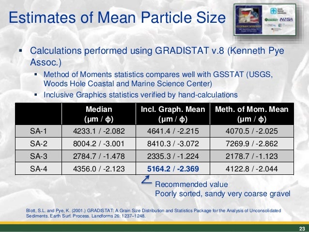 Sand Grain Size Analysis Materials Needed Equipment: (per table) 1. 6 sets of sieves = 10, 18, 35, 60, 120, 230, pan (6 sieves and the pan) 2.. Grain-size properties and organic-carbon stock of Yedoma Ice Complex permafrost from the Kolyma lowland, northeastern Siberia. . using the Gradistat . Download .. A computer program called GRADISTAT has been written for the rapid analysis of grain size statistics from any of the . Download Links [scape.brandonu.ca .