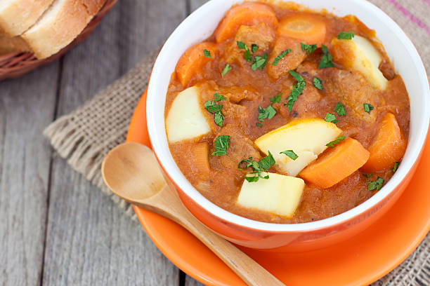 Začněte tím, že do hrnce přidáte cibuli a špetku česneku. Poté maso opečte na středním plameni. Dále vložte hovězí maso a opečte ho ze všech stran. Chcete-li pánev odglazovat, přidejte pivo nebo hovězí vývar/vývar, jakmile je hovězí maso osmahnuté. Dále smíchejte zbývající ingredience. Důkladně promíchejte a vařte na mírném ohni 1 až 2 hodiny.