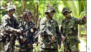 The Philippine authorities describe them as simply bandits who regularly engage in kidnap for ransom, while the US says they have links to Osama bin Laden's al-Qaeda organisation, blamed for the 11 September attack on America.